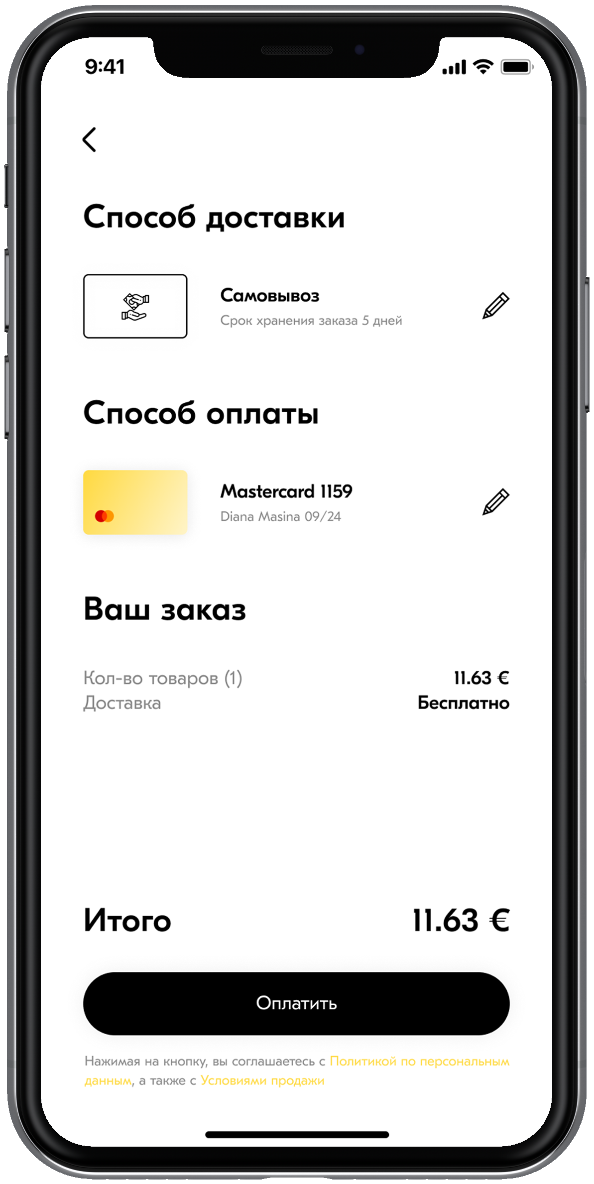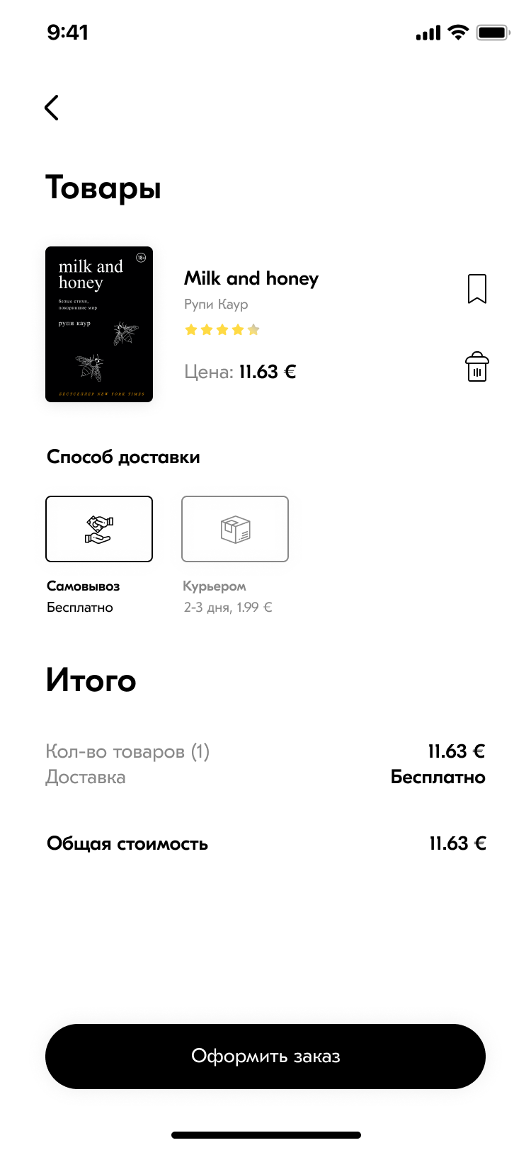 An easy two-step payment process shows the books in your cart and a choice of delivery method. Review your order, choose your card and press pay