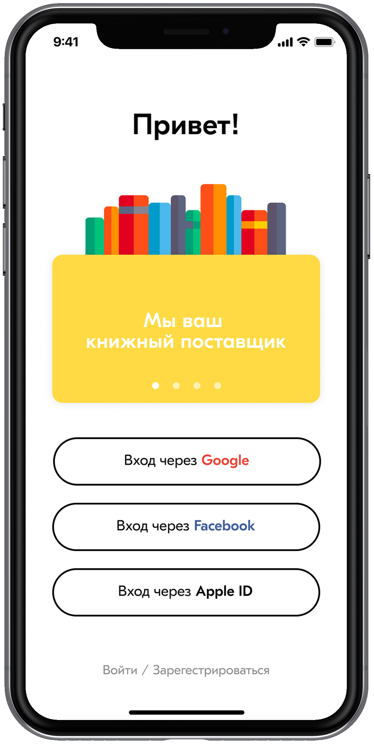 In order to browse for favourite books or view your purchase history, it is necessary to sign in via Google, Facebook, Apple ID, or simply register