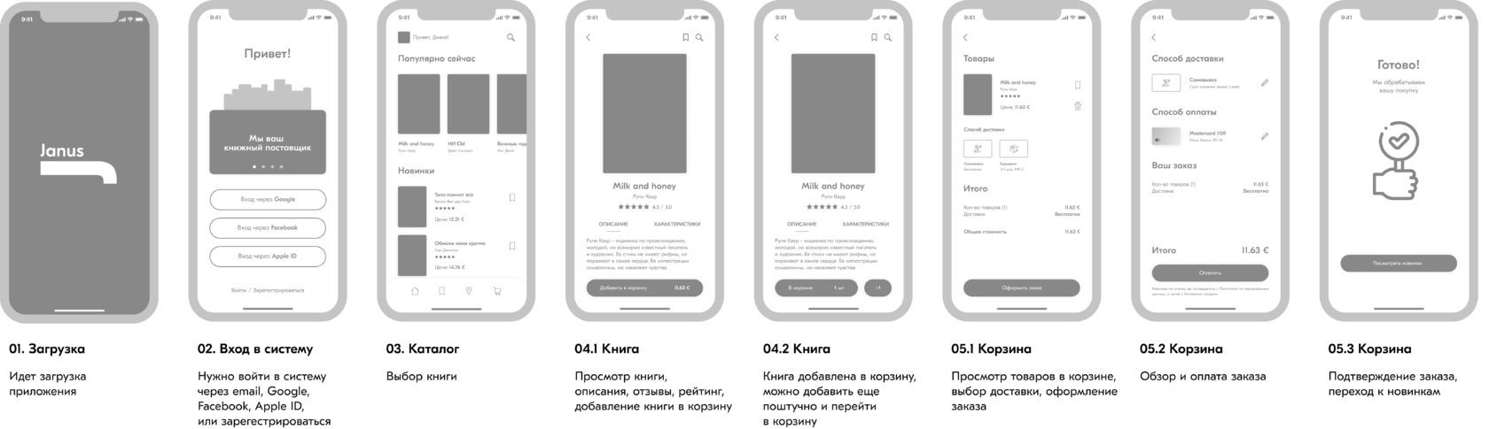 Create an app for Janus customers to facilitate navigation through the book catalog, create personal lists in order to organise their book choice, browse purchase history and track orders, rate books and write reviews